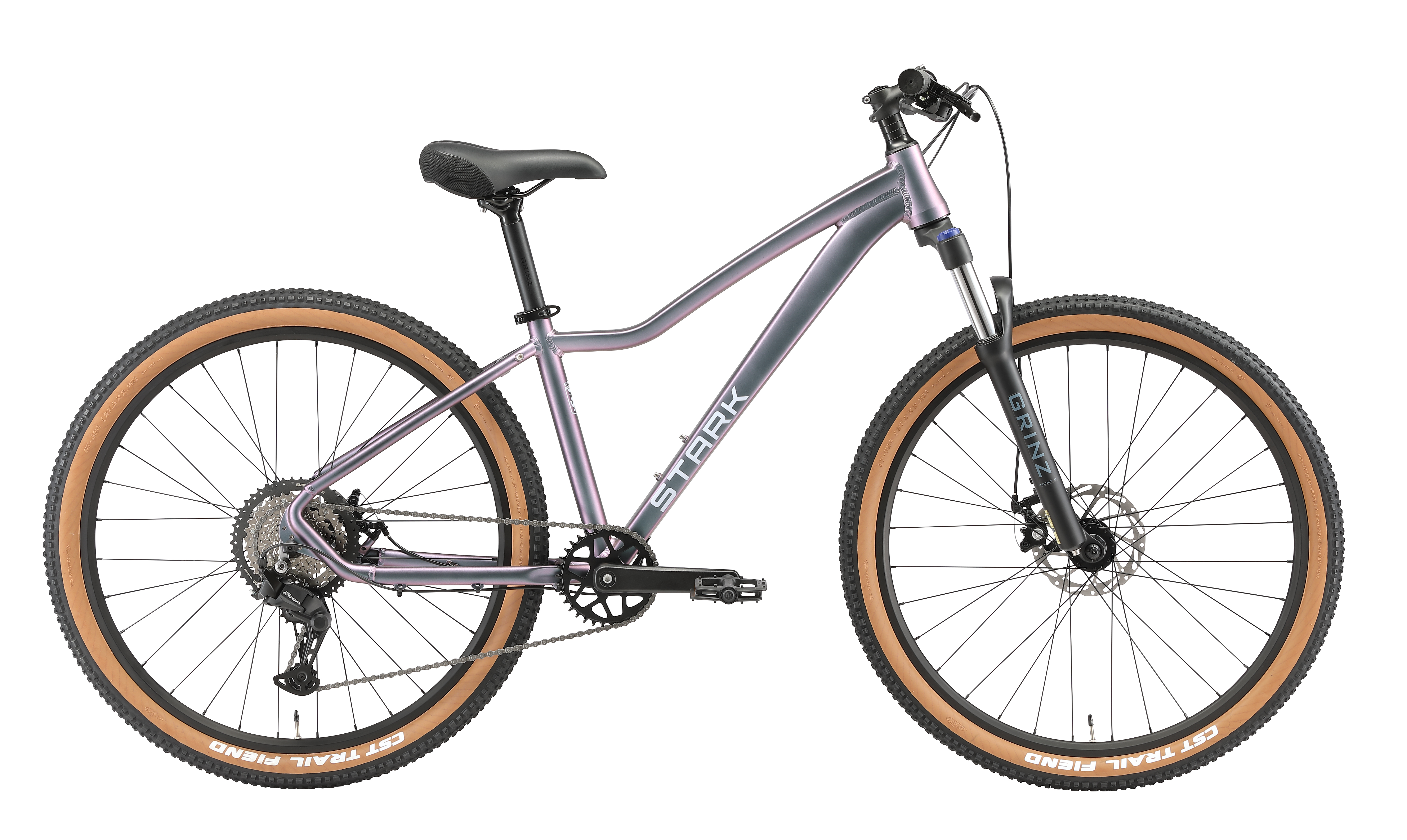 Бренд STARK Модель Viva 27.2 D Год 2026 Серия Viva Материал рамы Алюминий (Alloy) Рама/описание Алюминий AL-6061, T4-T6, Бесшовная, внутренняя проводка всех тросов Тип вилки Амортизационная (пружина) Вилка/регулировки Grinz Hortus, Алюминий, Пружинная, ход, мм 100, Предварительная нагрузка, блокировка, Магний, Пружинно-масляная, ход, мм 100, Предварительная нагрузка, блокировка Диаметр колес 27.5" (650B) Обода Stark DA-18 Покрышки 'CST C1965 2,25''' Тормоза Дисковые механические Тормоз Tektro MD-M280, роторы 160/160 мм. Уровень оборудования Начальный Шифтеры Shimano Altus SL-M315 Переключатель передний Нет Переключатель задний Shimano Essa RD-U2000 Кассета Shimano Essa CS-HG300 Цепь KMC Z8.3 Каретка Neco B-910, картридж Шатуны Prowheel C10Y-NW Количество скоростей 8 Руль Jieshun JH-808L, алюминий, 31,8 мм., 680-700 мм. Рулевая колонка Gineya GH-830D, полуинтегрированная, коническая Вынос Jieshun JX-008, кованый, алюминий, безрезьбовой, 31,8 мм., 60 мм. Седло K.SAN 6121 Подседельный штырь 27,2 мм., 350 мм. Педали Feimin FP-873 ZU Втулка передняя Solon DH-901YR/DH-901YF, 2 промподшипика Пол/возраст Женский Грипсы длина/тип XHH XH-104BL, 130 мм., Craton, Lock-On - Загрузка..